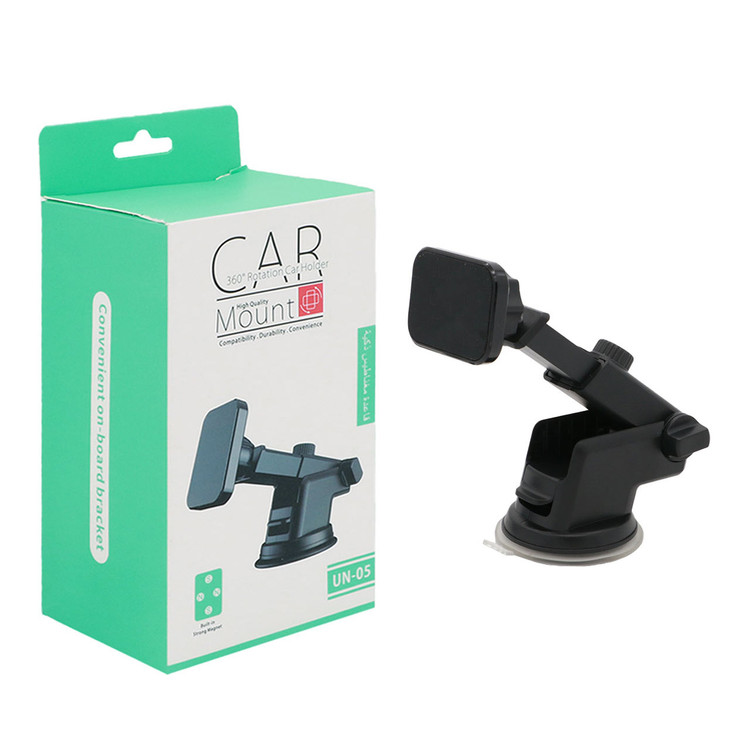 هولدر موبایل UN-05 از کیفیت ساخت بالایی برخوردار است و همچنین با 130 گرم، وزن سبکی دارد و با وجود بادکش قوی میتواند گوشی موبایل هوشمند تا سایز 7 اینچ را کاملا محکم بر سطوح صاف نگه دارد. مزیت پایه نگهدارنده تلفن همراه هوشمند UN-05 در قابلیت تنظیم در هر زوایه است با وجود گیره و بازوی چرخان و قابل اندازه گیری استفاده از گوشی موبایل در هنگام رانندگی مخصوصا زمانی که نیاز به مسیریابی دارید بسیار راحت و لذت بخش میباشد. برای اتصال گوشی موبایل بر روی هولدر 2 عدد صفحه مغناطیسی درون باکس پایه موبایل UN-05 قرار دارد که از حساسیت بالایی برخوردارند و گوشی موبایل را کاملا محکم بر روی هولدر نگه میدارند.