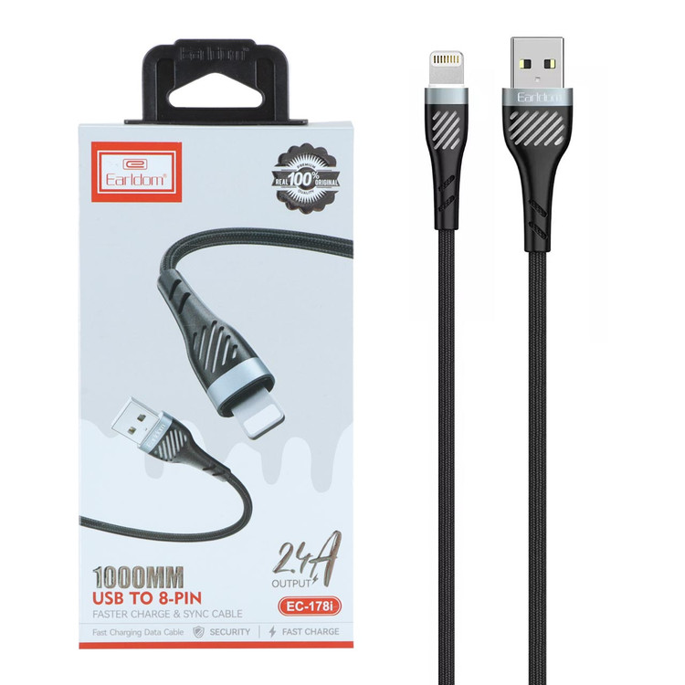 کابل شارژ سریع یو اس بی به لایتنینگ 2.4 آمپر یک متری ارلدام Earldom Lightning Cable EC-178i