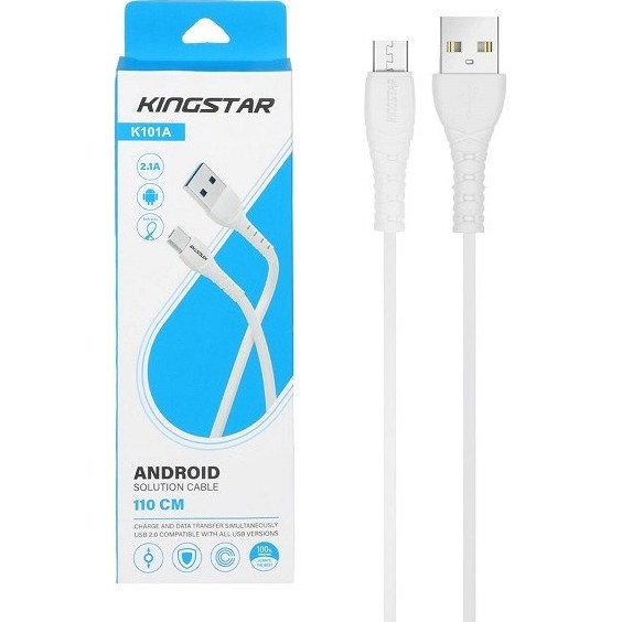 متاسفانه این کالا در حال حاضر موجود نیست. میتوانید از طریق لیست بالای صفحه، از محصولات مشابه این کالا دیدن نمایید.کابل کینگ استار King Star مدل K101A محصول جدیدی از این برند می باشد که برای شارژ محصولات دارای پورت MICRO USB طراحی شده است. کابل K101A دارای قابلیت شارژ سریع Fast Charge با شدت جریان 2.1 آمپر را دارا می باشد.جنس بدنه ی کابل از پلاستیک TPU با برش های لیزر می باشد که علاوه اصطحکام و انعطاف و مقاومت خوبی از خود نشان می دهد، جلوه زیبا و حس خوبی در هنگام استفاده به کاربر می بخشد. کابل کینگ استار مدل K101A به طول 110 سانتی متر می باشد که از متراژ استاندارد و مناسبی بهره می برد. کابل شارژ و دیتا MICRO USB کینگ استار K101C یک محصول کارآمد و مقرون به صرفه نسبت به رقبا می باشد.